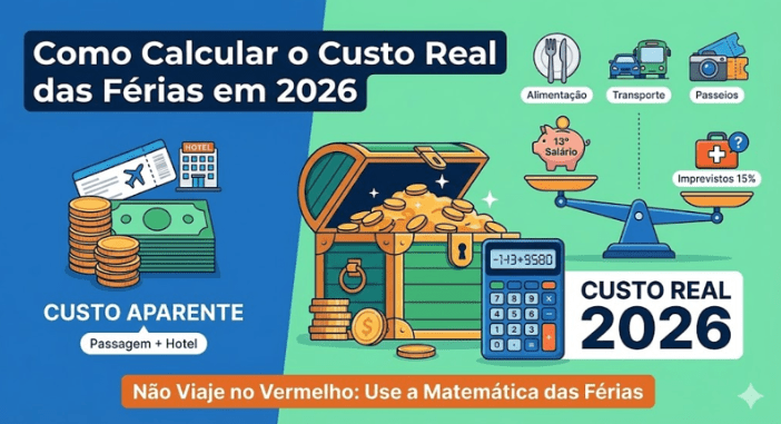 Meta Title (58 caracteres) Não Viaje no Vermelho: Como Calcular o Custo Real das Férias Meta Description (153 caracteres) Passagem e hotel não são tudo. Aprenda a calcular os custos invisíveis da sua viagem em 2026 e descubra como usar o 13º e Férias para viajar sem dívidas.
